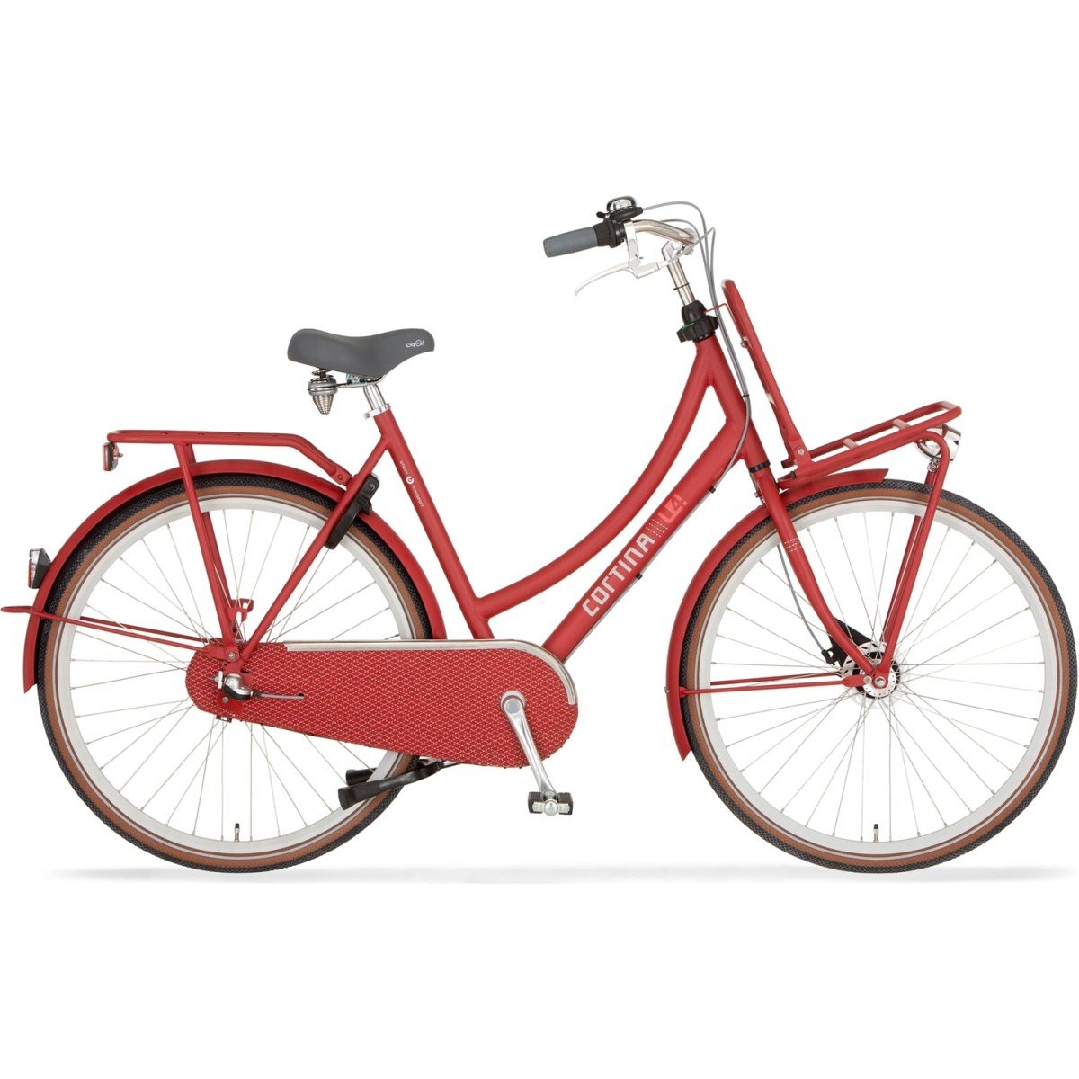 Cortina Transport U4 damesfiets in framemaat 57cm. Kleur: True Red Matt. Uitgerust met achter een Shimano Nexus 3-traps versnellingsnaaf met Rollerbrakes voor en achter. Opvallende details: aluminium frame, stuurslot, voordrager. Kleurnummer: URDW 24084 matt